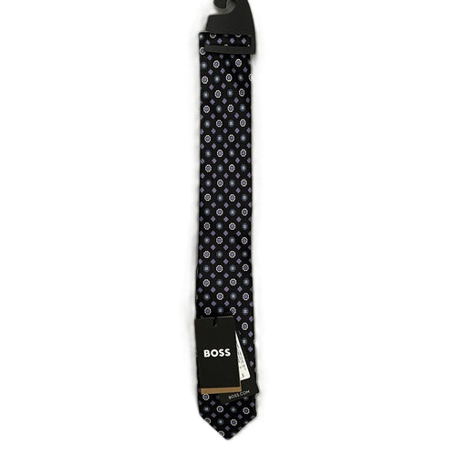 Boss Men's Slim 2.36" Tie 100% Silk Dark Blue Floral Print Made in Italy -